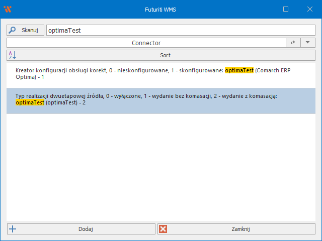 W menu głównym nawiguj do konfiguracji: zakładka Opcje → Konfiguracja, następnie przejdź do filtra Connector i wyszukaj wpis Kreator procesów lub istniejący wpis konfiguracji dwuetapowej