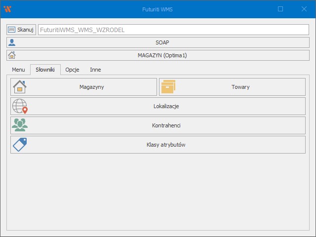 Załóżmy, że w omawianym scenariuszu użytkownik zdecydował się na wybranie opcji TEMP_MAG, zatwierdził wybór co spowodowało przeniesienie do ekranu głównego. Teraz przycisk ma nazwę TEMP_MAG, a nie jak wcześniej MAGAZYN, oznacza to, że obecnie aktualnym magazynem jest TEMP_MAG.