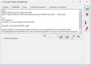 [SQL]@PAR ?@Hs200_Q|CDN_GUID:”@? PAR@ SELECT RpZ2_GIDNumer FROM CDN.RptZaznaczenia2 WHERE RpZ2_GUID = ??CDN_GUID [JS]var foreignId = „” var shell = new ActiveXObject(„WScript.Shell”) foreignId = Recordset.Fields(0).value shell.Run(„file:///C:%5C!Futuriti_Programy%5CCDN_Firma_DemoWMS%5C |