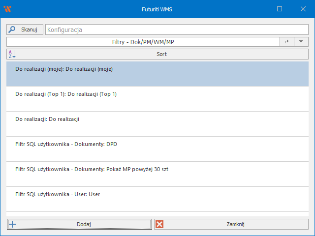 Futuriti WMS daje możliwość skonfigurowania filtrów w obrębie dokumentów typu:
