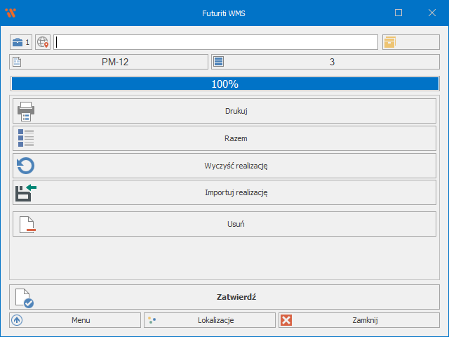 W menu wybierz opcję Importuj realizację i znajdź zapisany wcześniej plik. Po wybraniu pliku rozpocznie się proces importu.