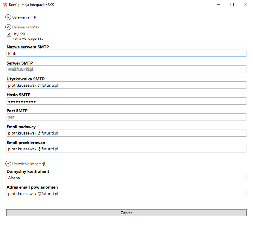 - SKK_FailureMail – adres, na który wysyłane są wiadomości o niepowodzeniu importu