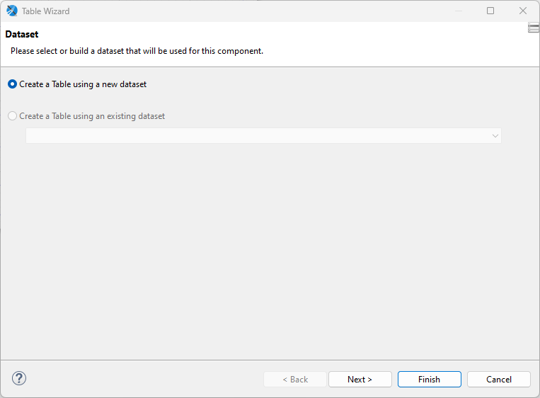 W kreatorze wybieramy kolejno: „Create a Table using new dataset”: