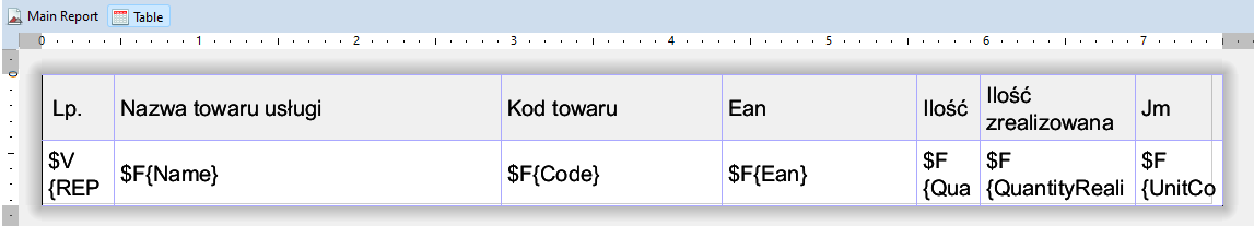 W celu poprawnego zaczytania raportu przez WMS musi on posiadać poprawnie skonfigurowane pola danych.