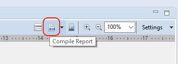 w tym celu należy kliknąć przycisk Compile Report w prawym górnym rogu okna widoku projektowania