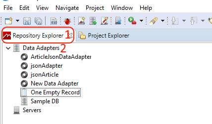 Następnie należy dodać źródło danych, w tym celu przejdź do zakładki Repository Explorer (1)