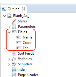 Wszystkie dodane pola znajdują się, w zakładce Outline → Fields