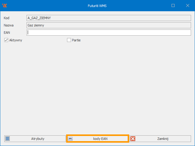 UWAGA: Kody EAN dodane w WMS obowiązują tylko w WMS i nie są synchronizowane do ERP. W przypadku aktualizacji towaru w ERP z wyłączoną obsługą po stronie WMS (działanie domyślne), wprowadzone w WMS zmiany zostaną napisane.