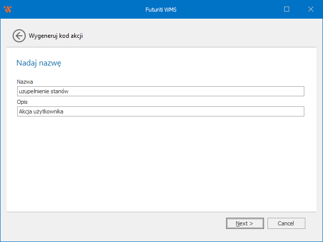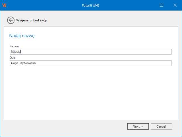 Nadaj nazwę, która użyta będzie do wykonywania kodu akcji