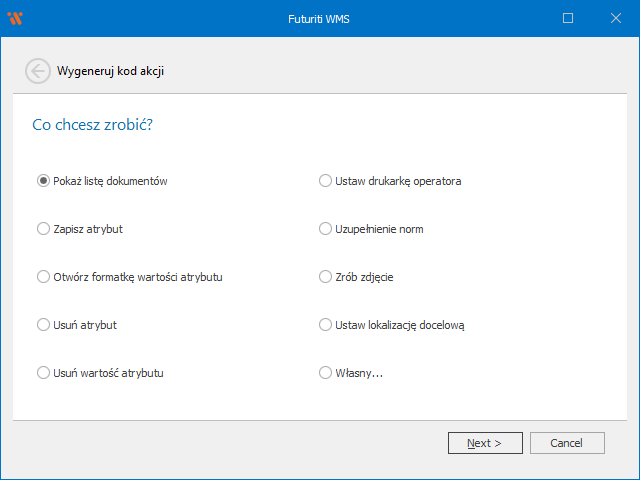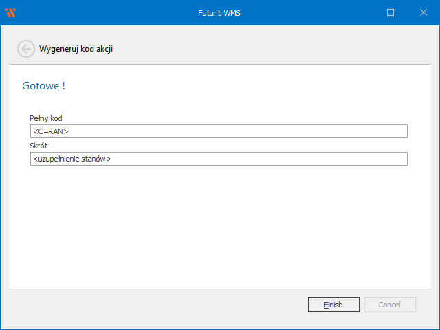 Kody można wygenerować za pomocą kreatora w Futuriti WMS.