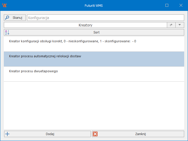 Wyszukaj wpis Kreator procesu automatycznej relokacji dostaw