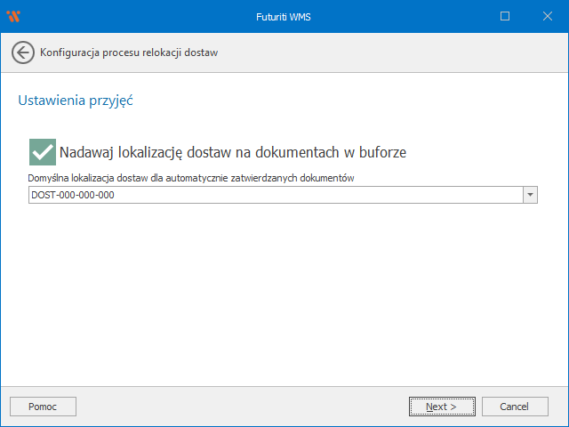 - WMS automatycznie przypisuje lokalizację dostaw dla wszystkich przyjęć jeśli taka lokalizacja istnieje, odznaczenie tej opcji spowoduje, że dokumenty przychodzące do bufora będą ignorować skonfigurowane lokalizacje dostaw