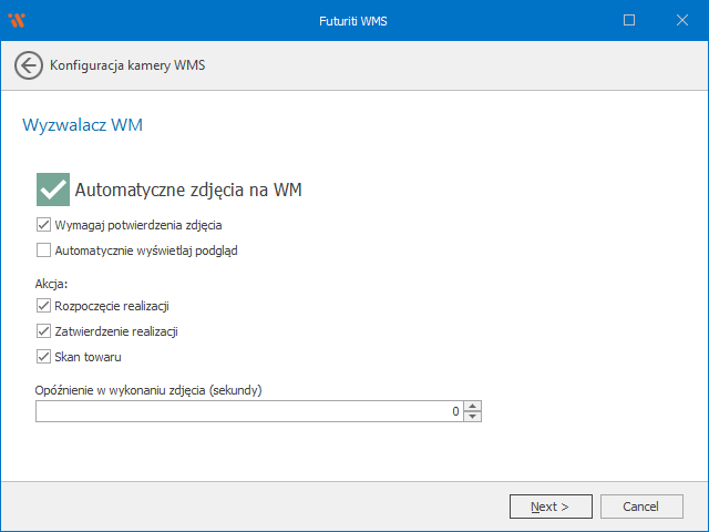- Automatyczne zdjęcia na WM/PM – aktywuje wyzwalacz kamery na dokumencie, bez włączonej opcji WMS nie będzie wykonywał zdjęć automatycznie po zaznaczonych akcjach
