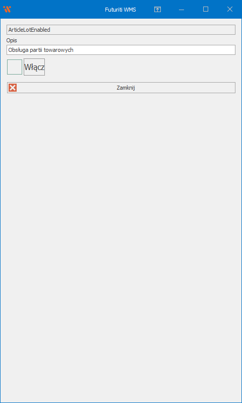 Następnie zaznacz pole Włącz aby włączyć obsługę partii przez WMS