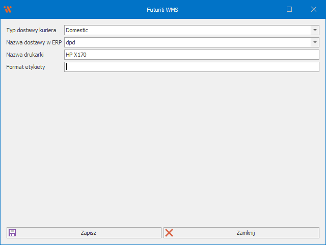 Należy wypełnić pole Login i Hasło, następnie wybrać z listy rozwijanej odpowiedniego kuriera, formatka dostosuje widoczność pól do wybranego kuriera.