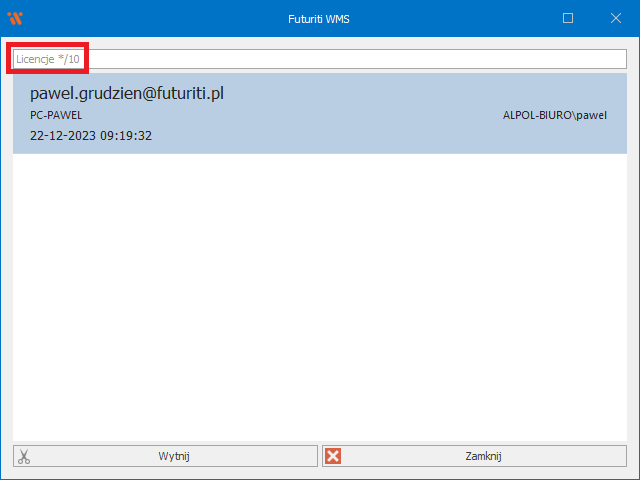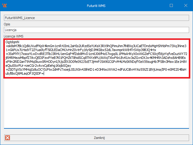 Program WMS do prawidłowego działania potrzebuje aktywnej licencji, którą można uzyskać kontaktując się z działem handlowym Futuriti