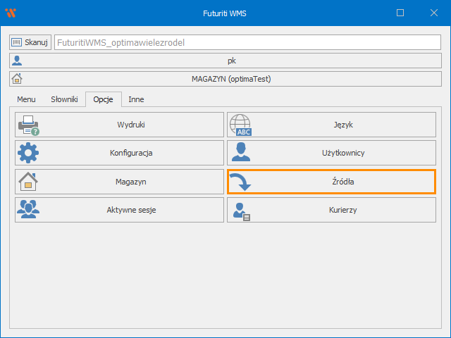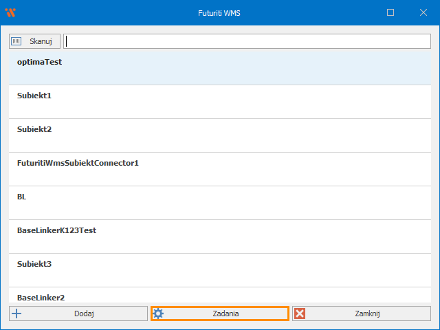 Po wybraniu źródła z listy można podejrzeć przypisane do niego zadania, w przypadku braku źródeł (np. brak integracji z Futuriti Connector) nadal można wybrać opcję zadania
