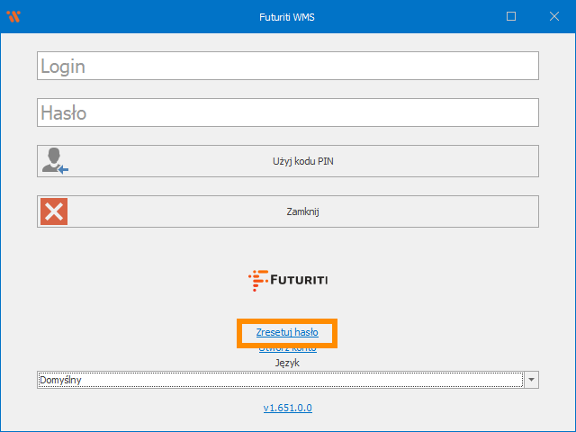 Jeśli użytkownik nie logował się do WMS przez okres 14 dni lub po upływie 30 dni, konto wymagać będzie ponownego uwierzytelnienia za pomocą hasła do konta Futuriti