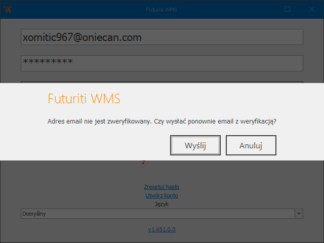 Każdy użytkownik logujący się do WMS musi potwierdzić wprowadzony podczas rejestracji adres e-mail.