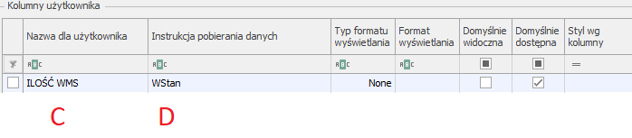 W polu nazwa dla użytkownika wpisujemy nazwę kolumny np. „Dokumenty WMS”