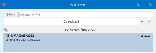 - W WMS pojawi się dokument WM(dla korekty zakupu) lub PM (dla korekty sprzedaży) do realizacji: