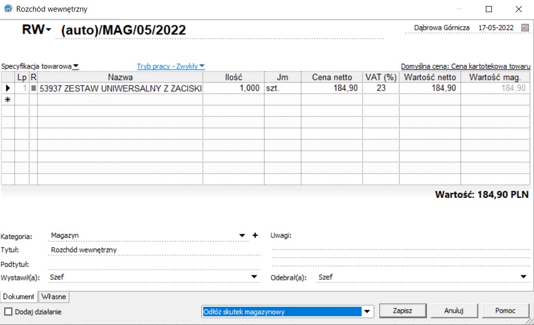 Obsługa przyjęć i wydań wewnętrznych (PW/RW)