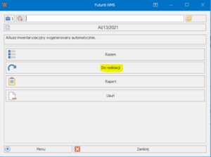 W celu przekazania inwentaryzacji do realizacji przez magazynierów, otwórz dokument i wybierz opcję Do Realizacji