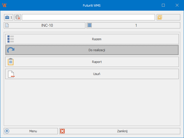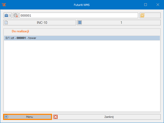 Po wybraniu wszystkich inwentaryzowanych towarów, przejdź do Menu dokumentu i przekaż inwentaryzację do realizacji