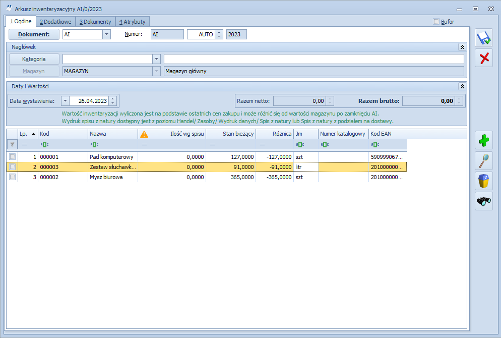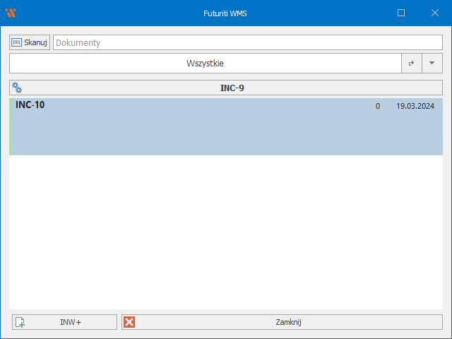 - INC+ – inwentaryzacja częściowa (z możliwością wyboru inwentaryzowanych towarów)