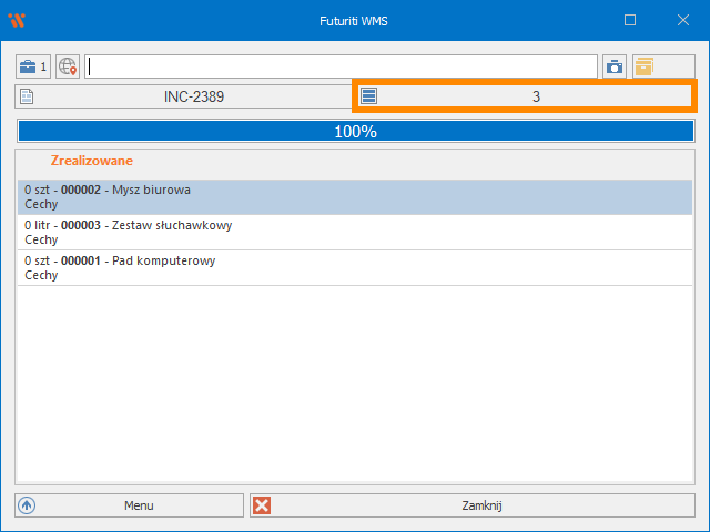 Inwentaryzacja częściowa jest dostępna w integracji WMS przez Futuriti Connector i umożliwia przeprowadzenie inwentaryzacji jedynie wybranych towarów.