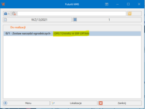 - Realizacja w WMS dokumentu utworzonego w EPR Optima