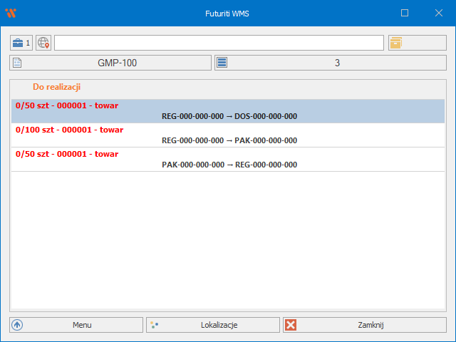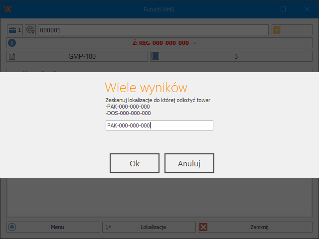 Na nowym komunikacie będą podpowiedziane maksymalnie 3 lokalizacje docelowe. Po zeskanowaniu lokalizacji na którą odłożony został towar zostanie ona zapamiętana
