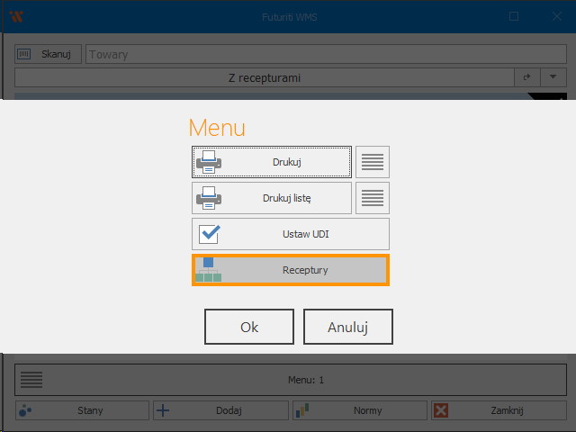 Lista towarów zostanie zawężona do tych, które mają przypisane receptury.