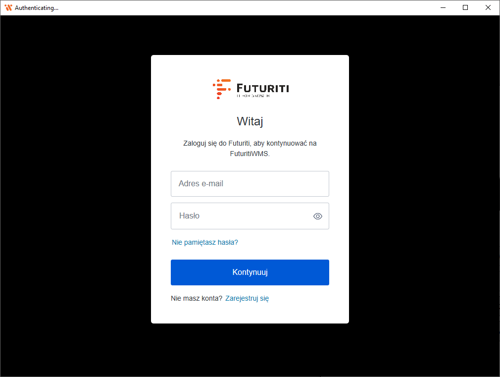 Wybierz opcję Zaloguj do Futuriti, otwarte zostanie okno logowania do Futuriti