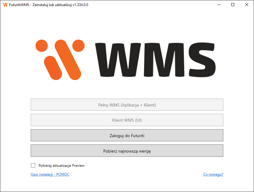W celu utworzenia nowego konta należy uruchomić instalator WMS w wersji przynajmniej 1.334