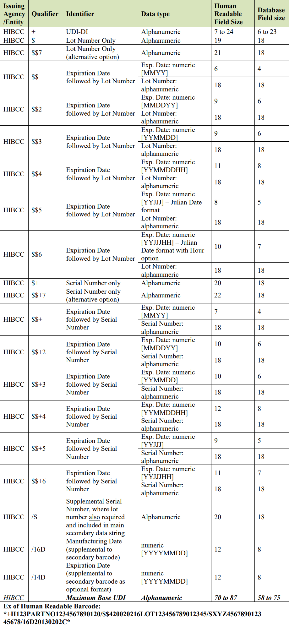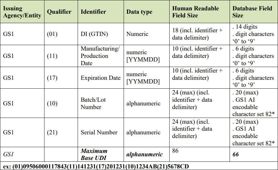 Fragmenty kodu GS1 o nieokreślonej długości rozdzielane są znakiem specjalnym: „” (kod ASCII: 29) – niektóre przeglądarki lub edytory tekstowe mogą nie wyświetlać znaku znajdującego się w cudzysłowie