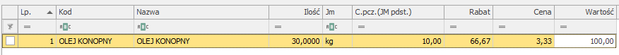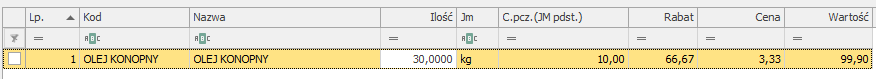 W przypadku synchronizacji dokumentu zawierającego pozycję ze zmodyfikowaną wartością, dla przykładu