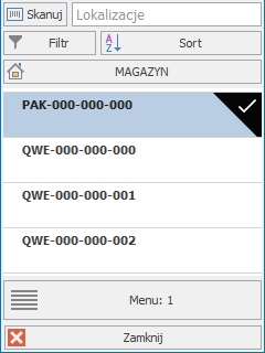 Po zaznaczeniu lokalizacji pojawi się przycisk Menu, wybierz nowo wyświetlony przycisk, zostanie wyświetlone menu wyboru wydruku tak jak opisane w wydruku etykiety towarowej