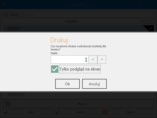 Po wyborze wydruku zostanie wyświetlony komunikat o podanie w ilu kopiach należy wykonać wydruk (domyślnie 1)