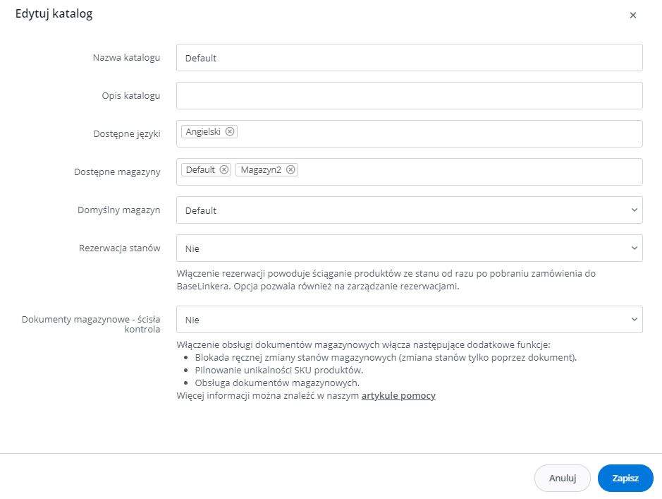 - Domyślny magazyn katalogu ➔ domyślny magazyn WMS [IsDefault]