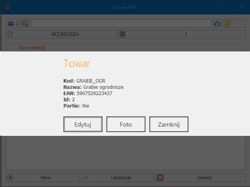Opcje edycji można wywołać klawiszem funkcyjnym F2 z poziomu dokumentu w WMS.
