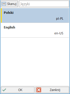 Na żółto oznaczony jest domyślny język operatora, w celu zmiany języka operatora zaznacz dowolny język i zatwierdź go za pomocą przycisku OK, domyślny język operatora wraz z interfejsem zostanie zaktualizowany do wybranego języka